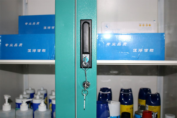 1、主柜體材質(zhì):1.2mm厚的鍍鋅鋼板,涂有抗酸堿的環(huán)氧聚酯涂層,雙門帶隔斷柜室,用于將非兼容化學品分類放置;前面板為≥8mm厚透明亞克力門板2塊,標配八塊PP層板,層板載重≥30Kg,且層板高度可調(diào)。(可放置150瓶500ml的試劑)