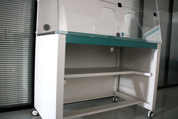 無(wú)管通風(fēng)柜不用外接管道,可隨意移動(dòng)??膳溆脻L輪推車(chē)。